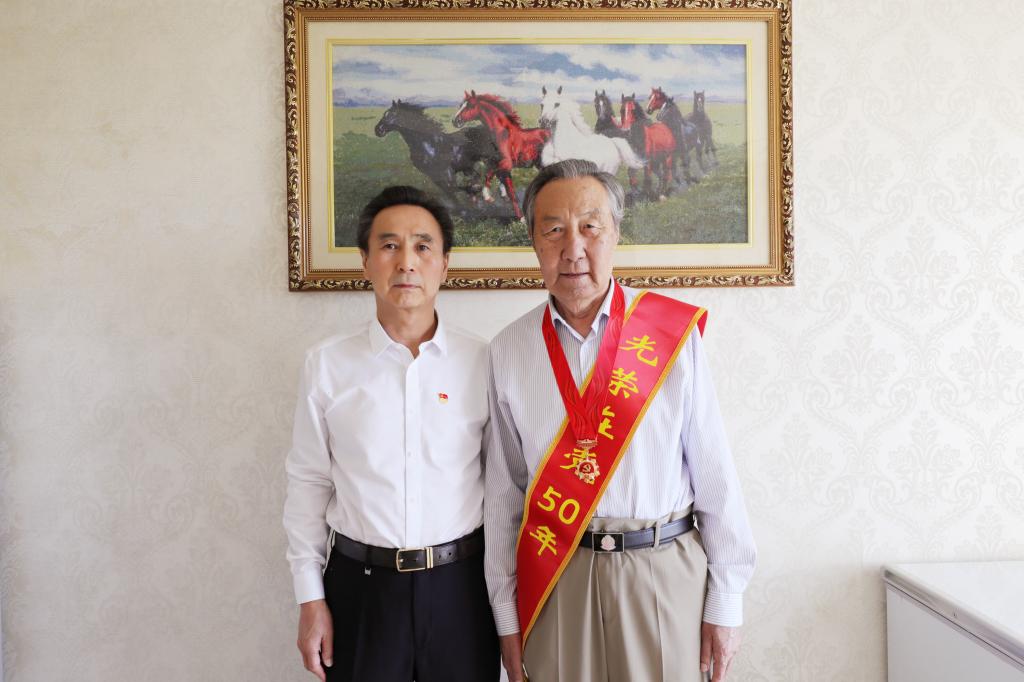 為了慶祝中國共產黨成立100周年,把黨的溫暖送到基層,七一前夕,學院開展慶祝建黨100周年走訪慰問老黨員活動。6月29日,學院領導及黨政辦負責人等分別走訪慰問了學院離休老黨員呼和同志、退休老黨員那仁達來同志,為他們頒發了“光榮在黨50年”紀念章并送上慰問金,向他們致以節日的問候和祝福。