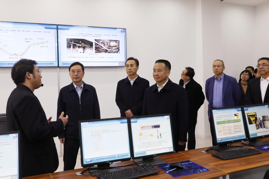 大飛機學院成立于2019年,是政府主導的中國商飛公司與鄂爾多斯應用技術學院校企合作項目,主要為國產大飛機各機型培養急需緊缺應用型本科專業人才,是國內成立的第一家大飛機學院。呂爾學一行首先來到我院虛擬仿真創新實驗中心,現場聆聽了航空專業實踐課《C919國產大飛機機身機翼虛擬裝配》,并與學院領導就我院應用技術人才培養情況進行了交流。