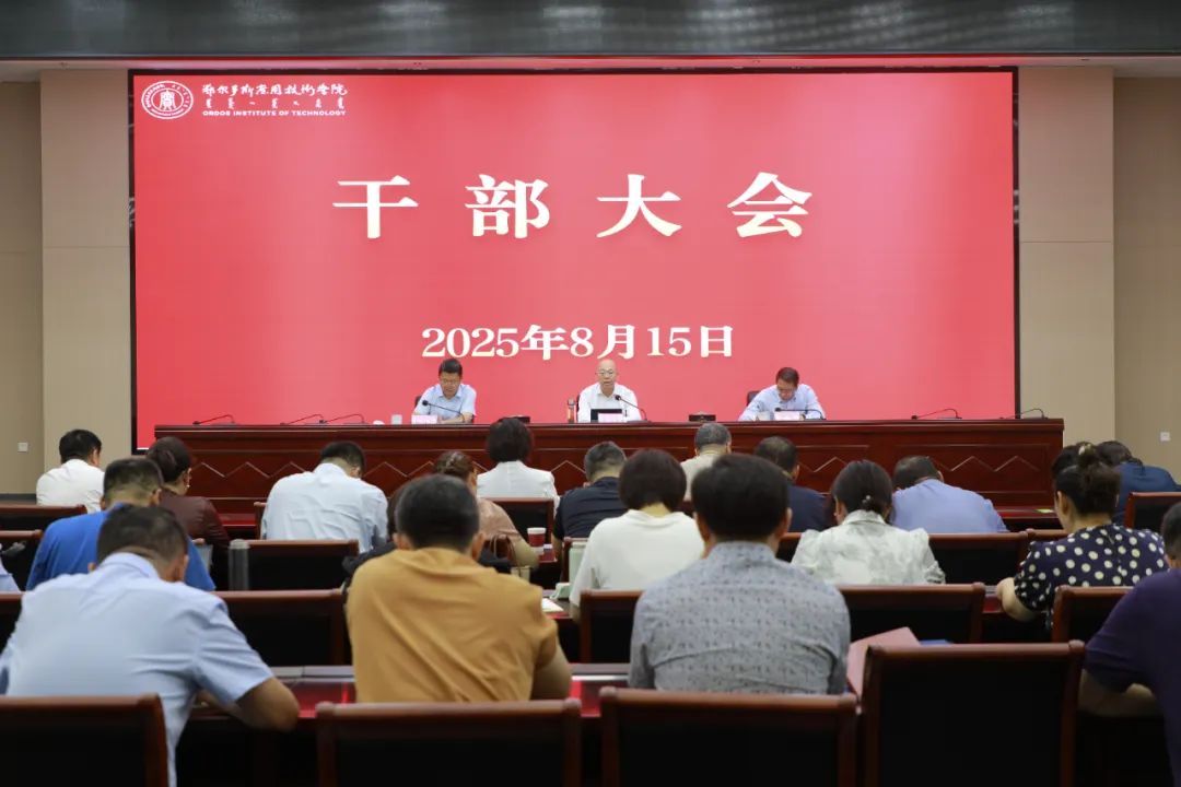 8月15日上午,學(xué)校召開干部大會。學(xué)校黨委書記李向東,黨委副書記、校長宮箭,黨委委員、紀委書記、監(jiān)察專員李少東,黨委委員、副校長金良出席會議。會議由黨委副書記秦聞蘋主持。各職能部門、二級學(xué)院(中心)黨政負責人參加會議。