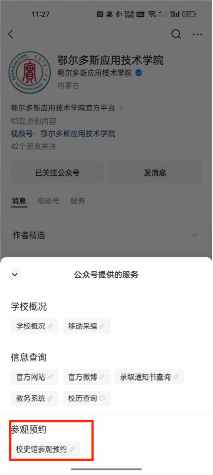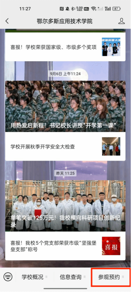 2.下滑找到“鄂爾多斯應用技術學院校史館預約申請”