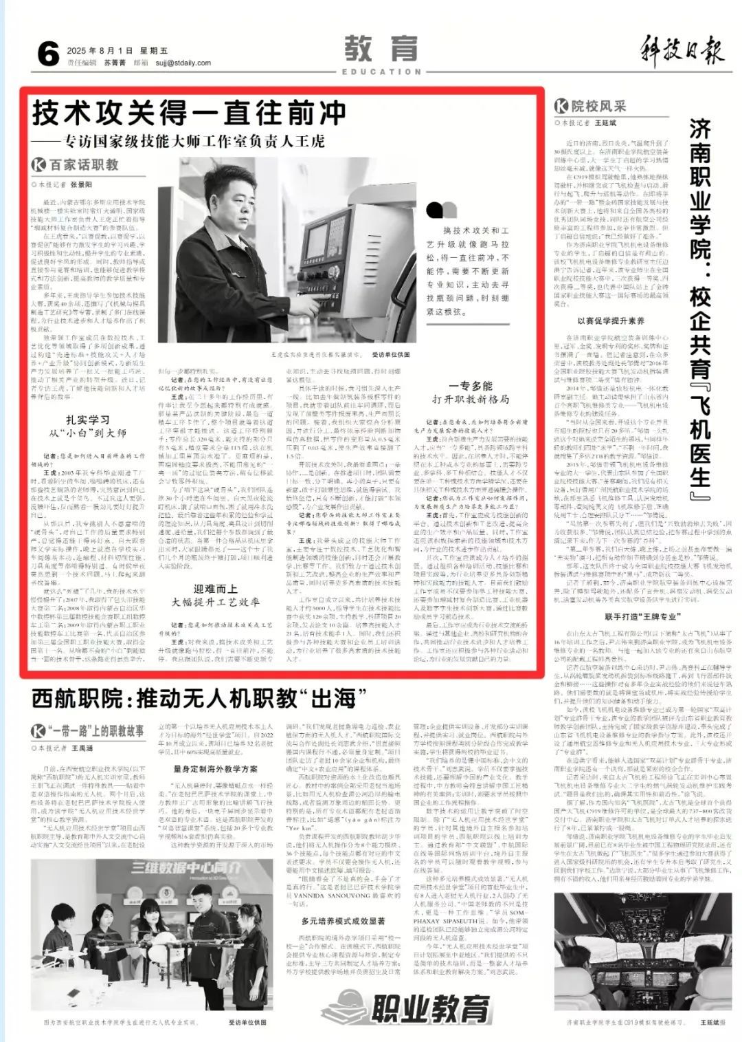 日前,《科技日報》“百家話職教”專欄以《技術攻關得一直往前沖——專訪國家級技能大師工作室負責人王虎》為題,采訪我校教師王虎在技能創(chuàng)新和人才培養(yǎng)背后的故事。