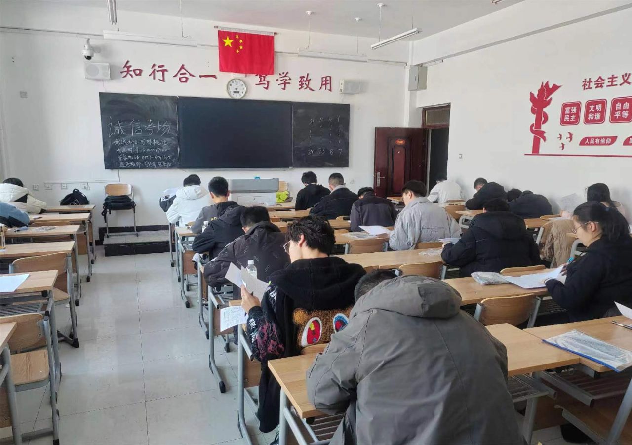 2023年12月25日至2024年1月7日,我校設置8場誠信考試,管理系、藝術系、土木工程系等7個系部、11個班的考生走進誠信考場,在沒有監考老師的考場奮筆疾書、井然有序,用誠實守信的學風、考風為自己的期末考試加“分”,用無一例違紀的良好表現為自己本學期的學習完滿收尾。